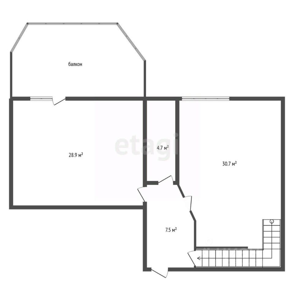 • Гостиная (30.7 м²) — место для встреч с друзьями и отдыха с близкими.