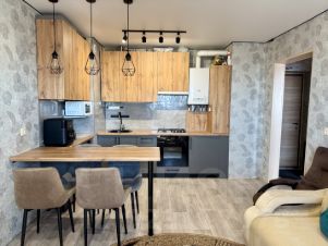 В квартире выполнена современная, качественная отделка: полностью заменена электрическая разводка, на стенах обои, натяжной потолок, на полу линолеум. С/у выложен светлой плиткой, установлена сантехника. Лоджия застеклена. Установлен кондиционер.