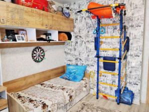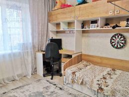 Квартира с изолированными комнатами, большой и светлой кухней, раздельным санузлом. В санузле и на кухне плитка, на стенах качественные обои, потолки натяжные. Квартира продается с мебелью и бытовой техникой. В спальне-гостиной: зонирующий пространство стеллаж с аквариумом, спальный гарнитур. В детской: стенка с кроватью и рабочим столом. На кухне: гарнитур со встроенной техникой (духовым шкафом, варочной панелью, вытяжкой, посудомоечной машиной). На кухне есть выход на балкон, с которого открывается панорамный вид на город.