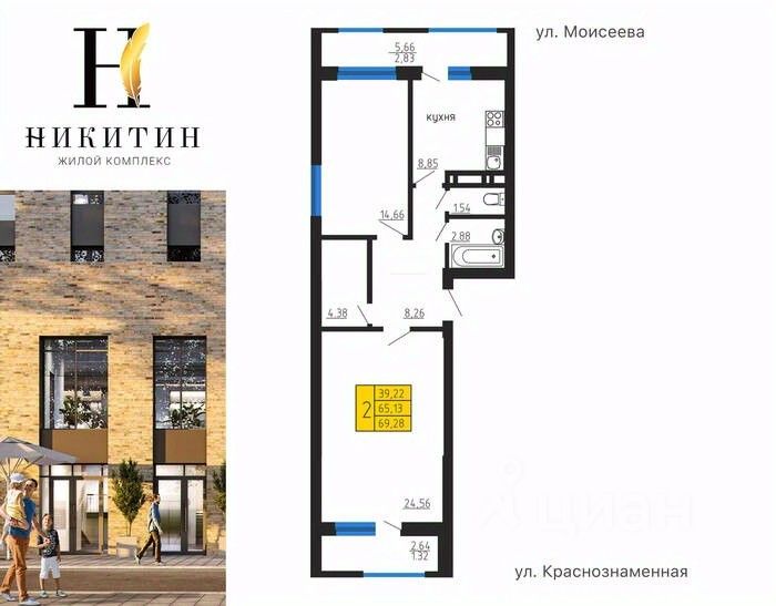 Продаётся 3-комнатная квартира в строящемся доме (Дом 2), срок сдачи: IV-кв. 2027, общей площадью 69.28 кв.м., на 15 этаже. Жилой комплекс "Никитин" расположен в Ленинском районе города Воронеж. Он представляет собой современный жилой комплекс, который включает в себя несколько многоэтажных домов, обустроенных территорию и парковочные места.