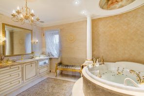 На первом уровне просторная кухня-гостиная 64кв с зимнем садом и панорамным остеклением, домашний кинотеатр с ПРОФИСИОНАЛЬНОЙ шумоизоляцией 45 кв , рабочий кабинет с выходом на лоджию оформленную в японском стиле , холл, гостевой санузел. На втором этаже расположена большая мастер-спальня 45кв, две детские комнаты 32 кв ,1 8кв . Ванная комната с джакузи , душевая с парогенератором (хамам) 22 кв.,отдельный санузел с биде , лоджия где установленна беговая дорожка