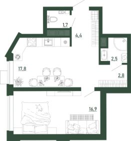 Жилая площадь16,9 м²
