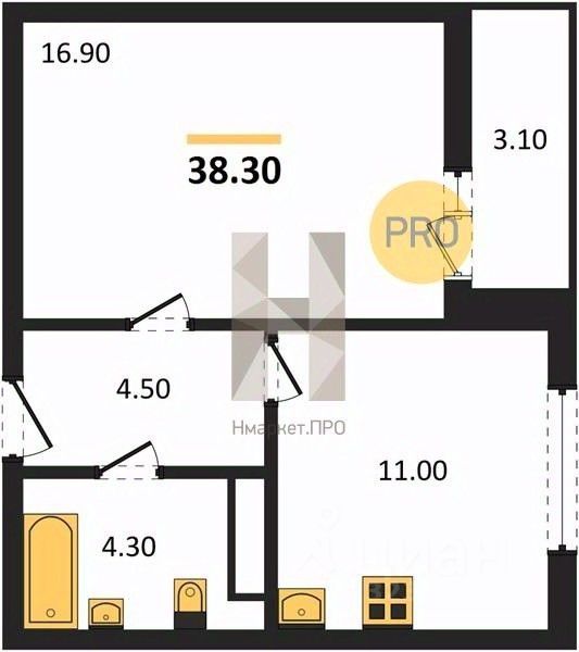 Общая площадь38,3 м²