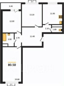 Общая площадь80,5 м²