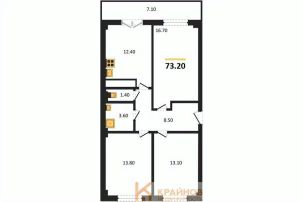 Квартира: 3 к 73,10 кв.м., 14 этаж в комплексе Ю, 2 очередь, корп.2, сдача: 4кв. , этажей: 15, адрес Воронеж г., Цимлянская ул., д. 10в, Застройщик: Еврострой.