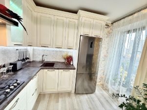 Готовый образ жизни: В квартире остается качественный кухонный гарнитур. Остальная мебель по договоренности. Вся инфраструктура — магазины, детские сады, спортивные и детские площадки — на территории.