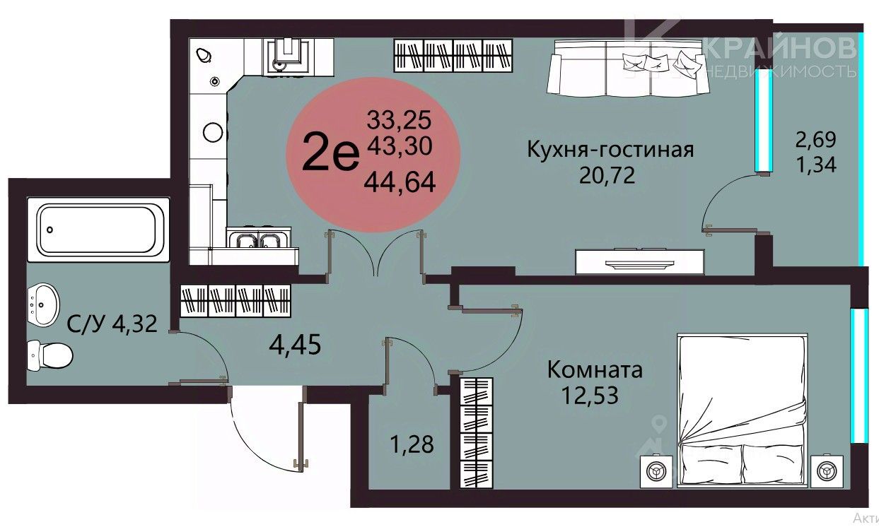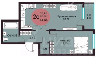 Евро двушка 44,64 кв. м., в черновой отделке, удачно расположенная в благоустроенном ЖK "Никитинские сады", нa комфортном 12 этаже, пo aдpecу: Покровская 19