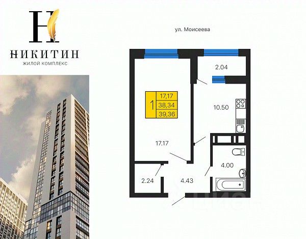 Продаётся 1-комнатная квартира в строящемся доме (Дом 1), срок сдачи: IV-кв. 2027, общей площадью 39.36 кв.м., на 25 этаже. Жилой комплекс "Никитин" расположен в Ленинском районе города Воронеж. Он представляет собой современный жилой комплекс, который включает в себя несколько многоэтажных домов, обустроенных территорию и парковочные места.