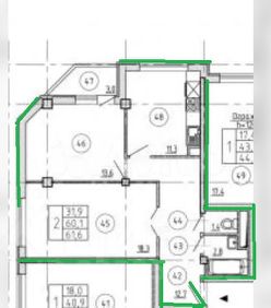 Раздельный санузел ,отделанный керамогранитом, мебель и сантехника установлена. Две большие изолированные комнаты : 18.9 кв.м (зал) и 13.5 кв.м спальня,а так же просторная кухня 11.9 кв.м(можно установить диван).