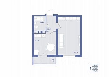 Продаётся 1-комнатная квартира в сданном доме (Тихая, 2 (Позиция 10)), срок сдачи: IV-кв. 2024, общей площадью 38.4 кв.м., на 7 этаже. Расположение, транспортная доступность
