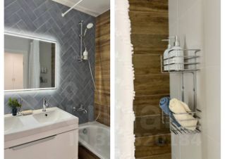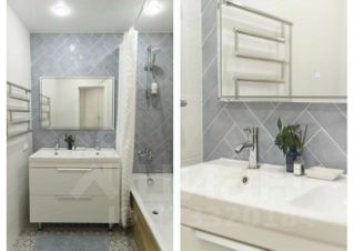 Ванна 3,6 кв.м с большим зеркалом с подсветкой, двойной раковиной и вместительной тумбой