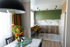 -Кухня оснащена всей необходимой техникой: посудомоечная машина 60 см, духовой шкаф, микроволновая печь, индукционная плита на 4 конфорки, вытяжка, большой 2-х створчатый холодильник, стиральная машина. Так же стоит система фильтрации воды - обратный осмос.