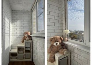 - Застекленный балкон (3,2 кв.м) с системой хранения для игрушек