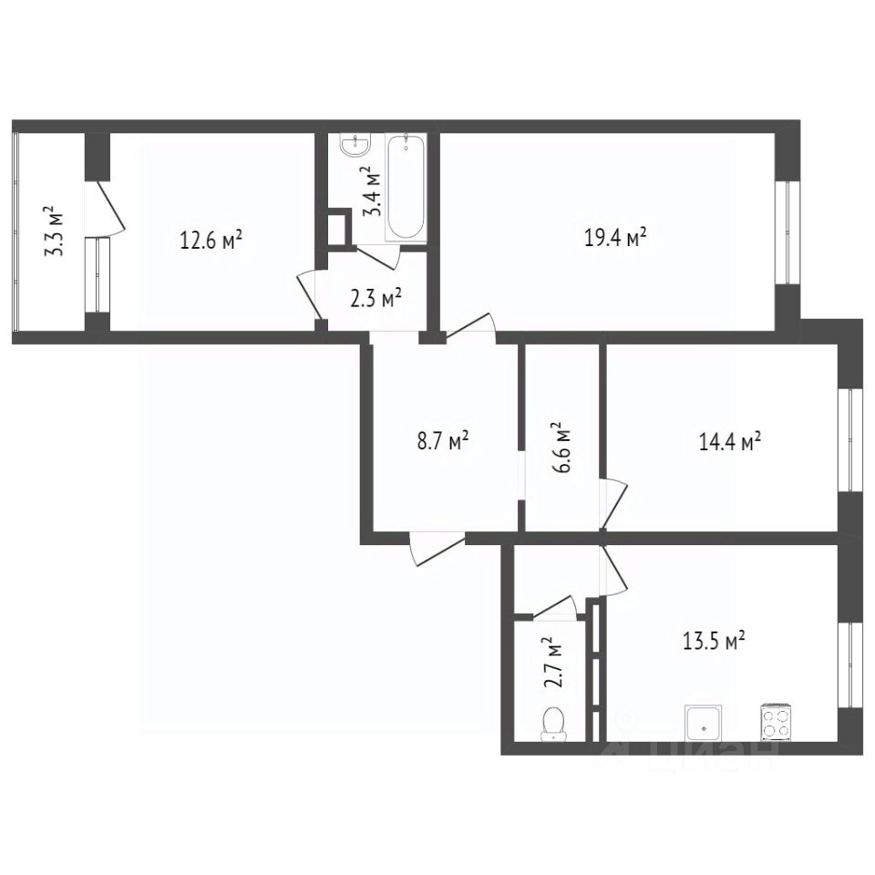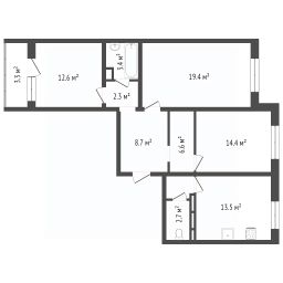 Продается просторная 3-х комнатная квартира жилом комплексе "Молодёжный" район Шилово общей площадью 72.5 м2  на 19 этаже /19 этажного дома .