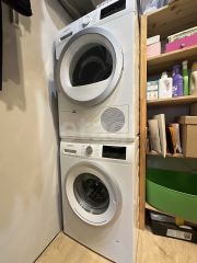 Удобство хранения: отделфьная гардеробная в спальне и кладовая-постиросная в квартире .