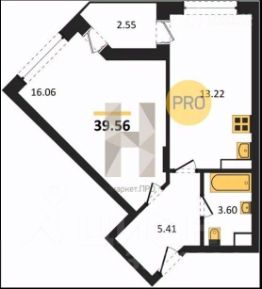 Площадь: Общая 39,56 кв.м Комната 16,06 кв.м