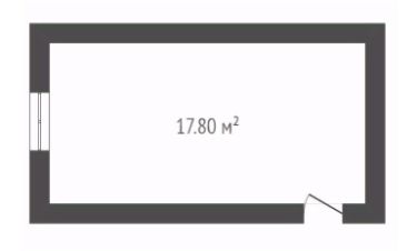 Просторная комната правильной формы. При желании можно организовать зону кухни — рядом санузел, что позволяет технически подвести воду и канализацию.