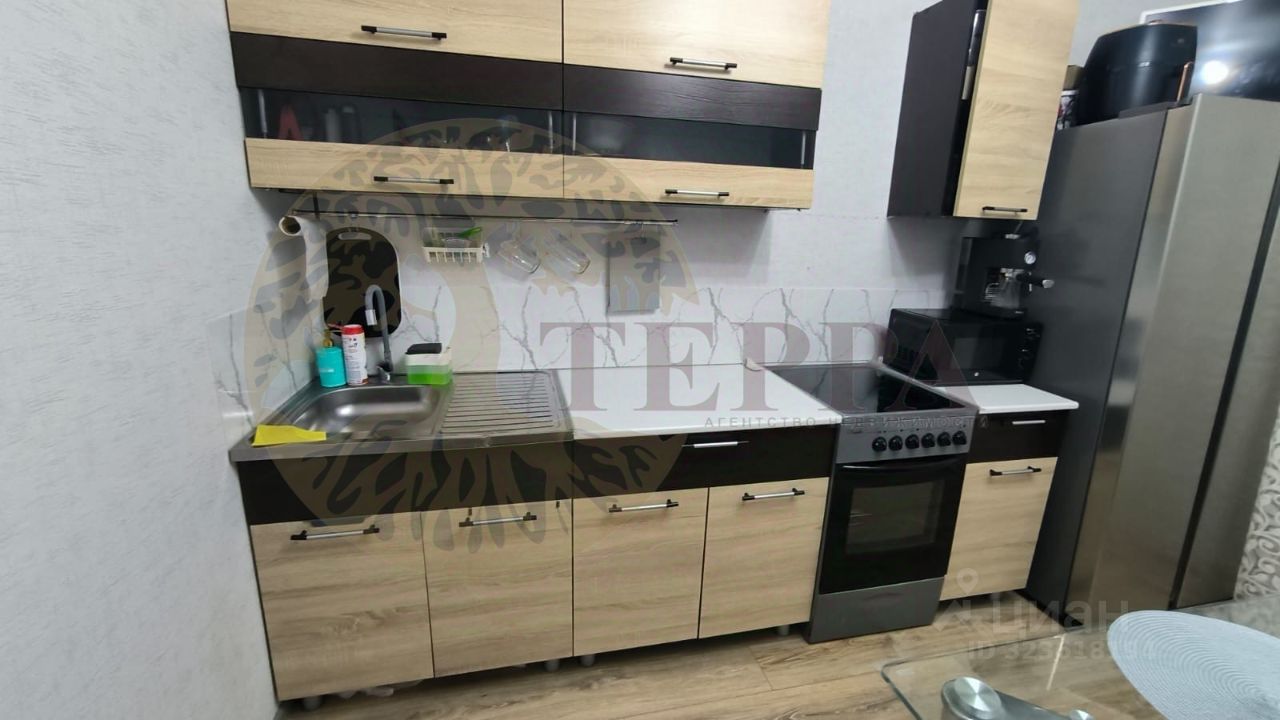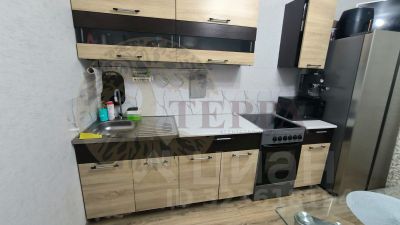 Просторная кухня с выходом на балкон. Новым собственникам останется новая кухня и варочная панель. Установлена система умный дом.