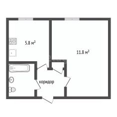 Объект отличается рациональной планировкой: изолированная комната 11,8 кв.м, практичная кухня 5 кв.м и компактный совмещенный санузел. В коридоре оборудован встроенный шкаф для хранения, что позволяет оптимизировать полезное пространство.