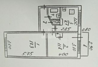 Общая площадь 44 кв.м. Комнаты раздельные (17 кв м и 12 кв м), санузел - тоже. Кухня - 6 кв м. Горячая вода - центральная.