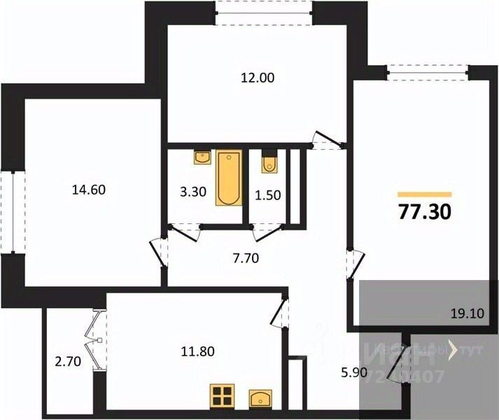 Квартира: 3 к 77,30 кв.м., 3 этаж в комплексе Черемушки, 3 очередь, корп.1 (3 квартал), сдача: 4кв. , этажей: 17, адрес Отрадное п., Фестивальная ул., д. 15, Застройщик: ДСК.
