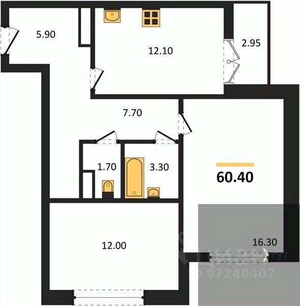 Квартира: 2 к 60,40 кв.м., 7 этаж в комплексе Черемушки, 3 очередь, корп.1 (3 квартал), сдача: 4кв. , этажей: 17, адрес Отрадное п., Фестивальная ул., д. 15, Застройщик: ДСК.