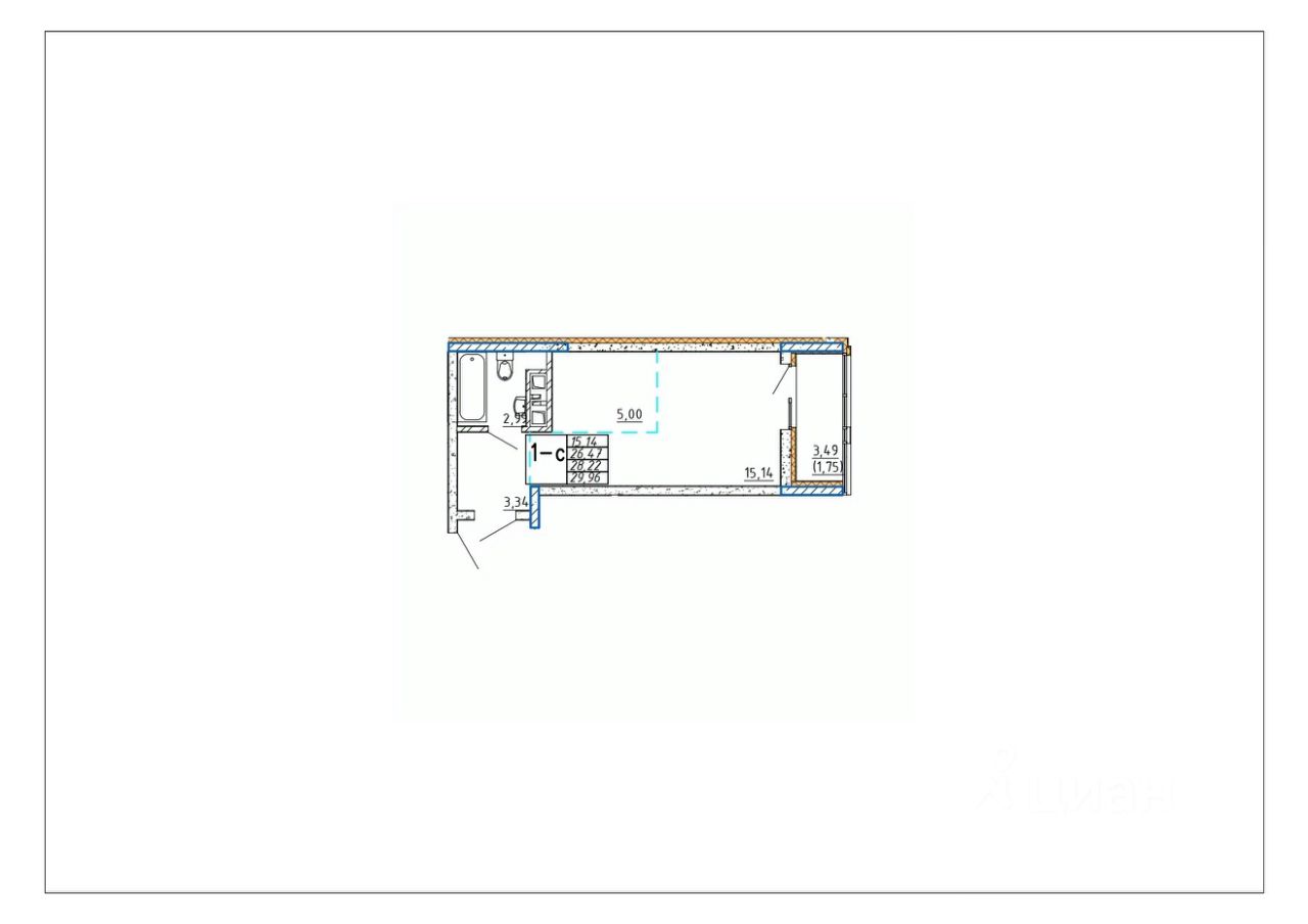 Продаётся студия в строящемся доме (Дом 1), срок сдачи: IV-кв. 2027, общей площадью 28.22 кв.м., на 5 этаже.