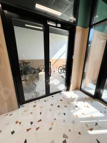 Дом оборудован всеми необходимыми удобствами: есть как пассажирский, так и грузовой лифт, что упрощает перемещение по этажам. На территории предусмотрена наземная парковка, поэтому можно не беспокоиться о месте для автомобиля. Также в доме установлен пандус для удобства маломобильных граждан.