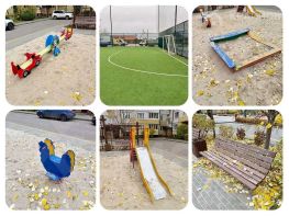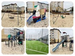 • На территории — 7 детских площадок, футбольное и волейбольное поля