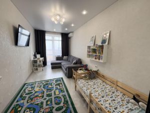 В подарок остается кухонный гарнитур со встроенной техникой (плита, духовой шкаф,вытяжка), встроенная гардеробная система, бойлер, тумба и зеркало с подсветкой в ванной комнате, сплит-система,а так же различные приятные бонусы.