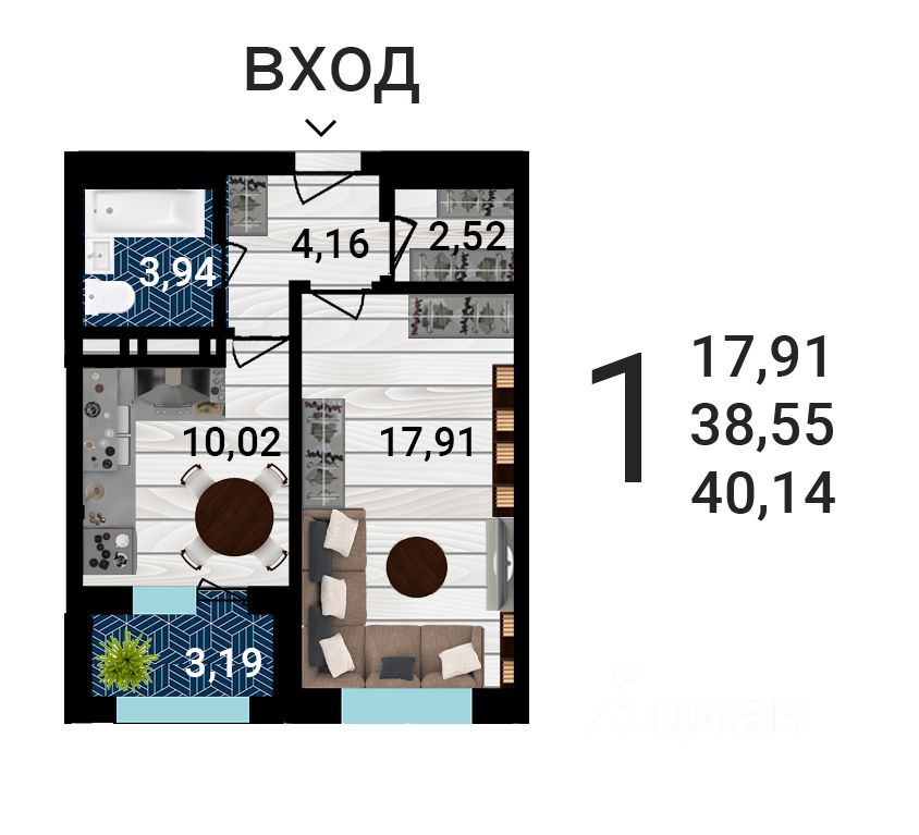 Продаётся 1-комнатная квартира в строящемся доме (Дом 1), срок сдачи: IV-кв. 2027, общей площадью 40.02 кв.м., на 7 этаже. Жилой комплекс "Никитин" расположен в Ленинском районе города Воронеж. Он представляет собой современный жилой комплекс, который включает в себя несколько многоэтажных домов, обустроенных территорию и парковочные места.