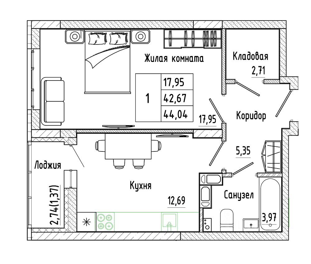 Продаётся 1-комнатная квартира в строящемся доме (Дом 2), срок сдачи: II-кв. 2029, общей площадью 44.04 кв.м., на 13 этаже. Жилой комплекс "Алые паруса" представляет собой 19-этажный жилой дом на улице Мопра, 16 вблизи парка "Алые паруса".