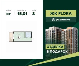 В продаже квартира площадью 15.01 кв. м с отделкой. Квартира расположена на 8 этаже 17 этажного дома, в жилом комплексе комфорт-класса FLORA ("Флора").