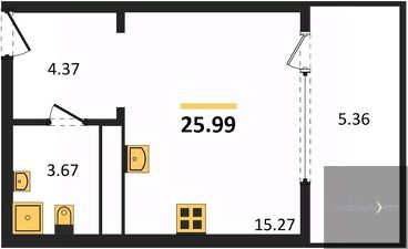 Студия: 25,99 кв.м., 10 этаж в комплексе Z-town, 1 очередь, корп.1, сдача: 2кв. , этажей: 21, адрес Воронеж г., Чуева наб., д. 7, Застройщик: Новый код.