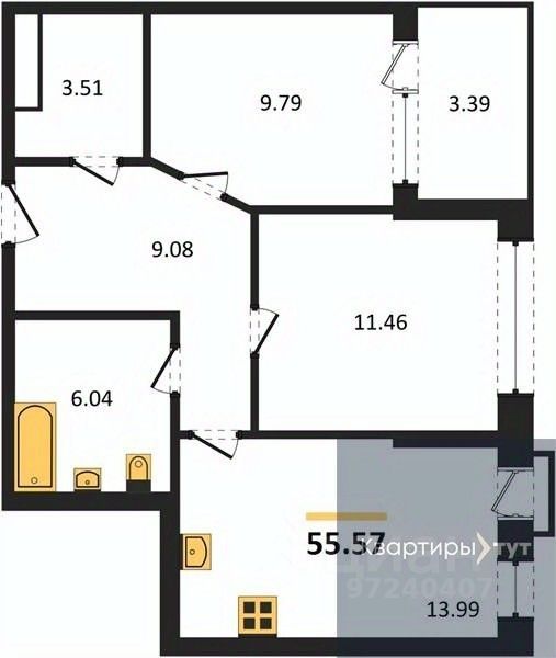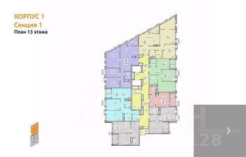 Квартира: 2 к 55,57 кв.м., 13 этаж в комплексе Z-town, 1 очередь, корп.1, сдача: 2кв. , этажей: 21, адрес Воронеж г., Чуева наб., д. 7, Застройщик: Новый код.