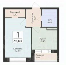 Описание объекта: Продается комфортная однокомнатная квартира площадью 35,64 кв.м. в современном жилом комплексе "Октябрьский квартал". Квартира расположена на 2 этаже 25-этажного дома. Высота потолков — 2,67 м.