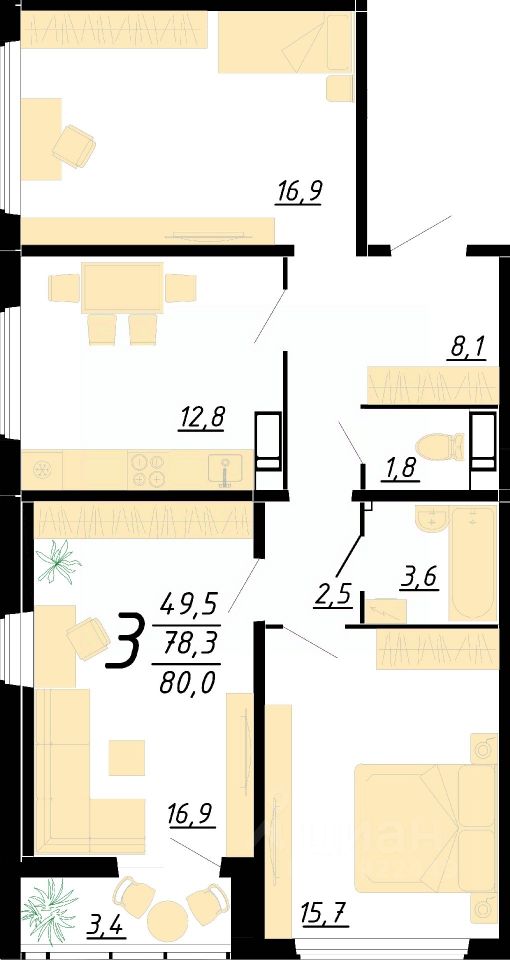 Продаётся 3-комнатная квартира в строящемся доме (Позиция 7), срок сдачи: I-кв. 2026, общей площадью 80 кв.м., на 15 этаже. Новый жилок комплекс "Яблоневые сады" от группы компаний "Домостроительный комбинат" расположен по адресу: г. Воронеж, по ул. Загоровского.