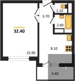 Квартира: 1 к 32,40 кв.м., 5 этаж в комплексе Ласточкино, 10 очередь, корп.35 (АI), сдача: 1кв. , этажей: 17, адрес Воронеж г., Острогожская ул., , Застройщик: ДСК.