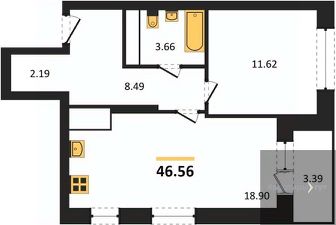 Квартира: 1 к 46,56 кв.м., 19 этаж в комплексе Галилей, 1 очередь, корп.1, сдача: 3кв. , этажей: 25, адрес Воронеж г., Кривошеина ул., д. 13/14, Застройщик: ГК Крайс.