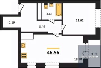 Квартира: 1 к 46,56 кв.м., 19 этаж в комплексе Галилей, 1 очередь, корп.3, сдача: 3кв. , этажей: 25, адрес Воронеж г., Кривошеина ул., д. 13/14, Застройщик: ГК Крайс.