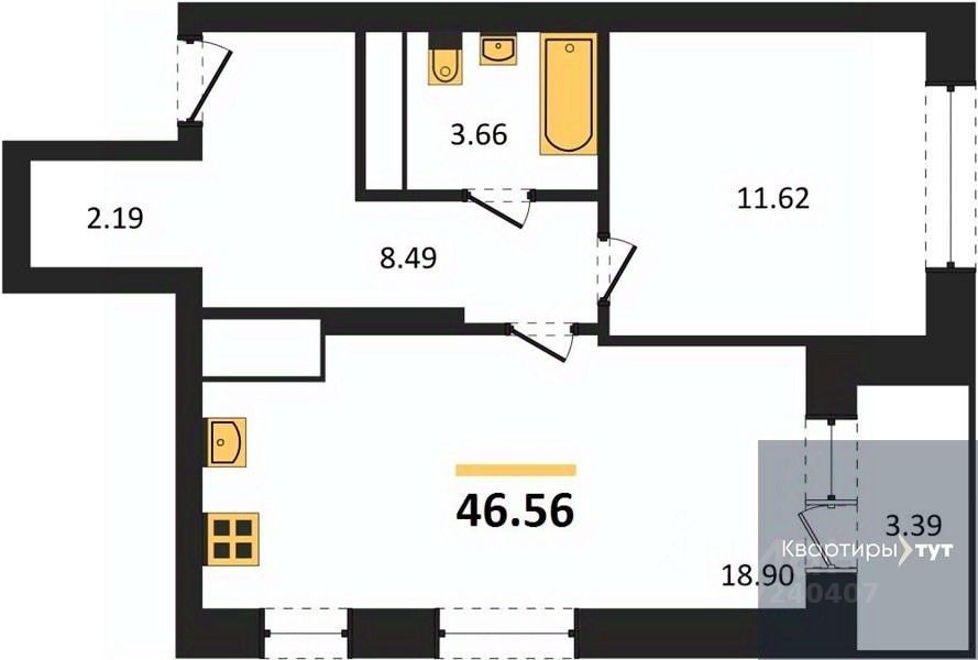 Квартира: 1 к 46,56 кв.м., 23 этаж в комплексе Галилей, 1 очередь, корп.3, сдача: 3кв. , этажей: 25, адрес Воронеж г., Кривошеина ул., д. 13/14, Застройщик: ГК Крайс.
