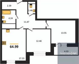 Квартира: 2 к 64,99 кв.м., 19 этаж в комплексе Галилей, 1 очередь, корп.2, сдача: 3кв. , этажей: 25, адрес Воронеж г., Кривошеина ул., д. 13/14, Застройщик: ГК Крайс.