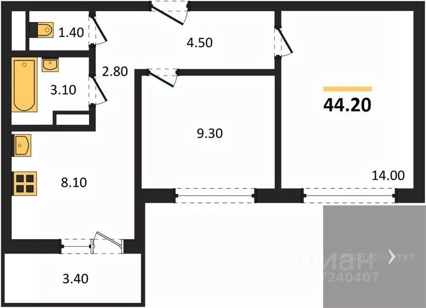 Квартира: 2 к 44,20 кв.м., 7 этаж в комплексе Ласточкино, 10 очередь, корп.35 (АI), сдача: 1кв. , этажей: 17, адрес Воронеж г., Острогожская ул., , Застройщик: ДСК.