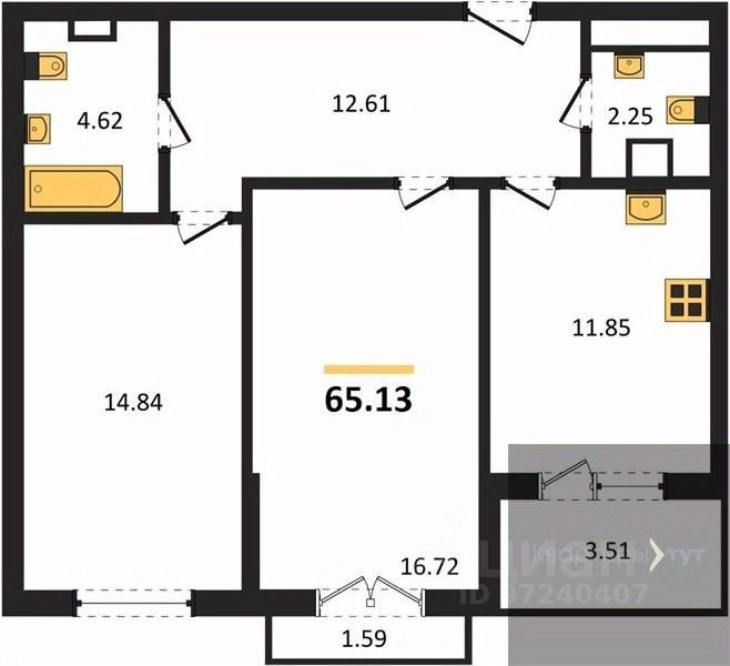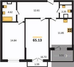 Квартира: 2 к 65,13 кв.м., 3 этаж в комплексе Городские сады, 2 очередь, корп.1, сдача: 2кв. , этажей: 18, адрес Воронеж г., Ломоносова ул., , Застройщик: ВДК.