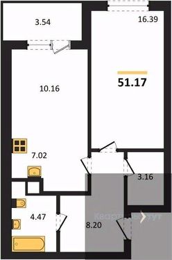 Квартира: 1 к 51,17 кв.м., 3 этаж в комплексе Городские сады, 2 очередь, корп.1, сдача: 2кв. , этажей: 18, адрес Воронеж г., Ломоносова ул., , Застройщик: ВДК.