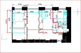 Трехкомнатная квартира, перепланированная в евро двухкомнатную (новую планировку см.в фото).