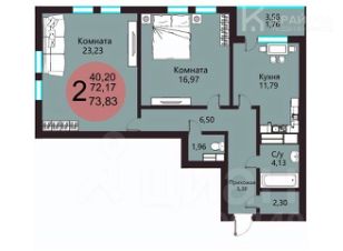 Жилая 40,2 Кухня 11,79 Раздельный санузел: большая ванная комната 4,13 и туалет 1,96 Гардеробная 2,30