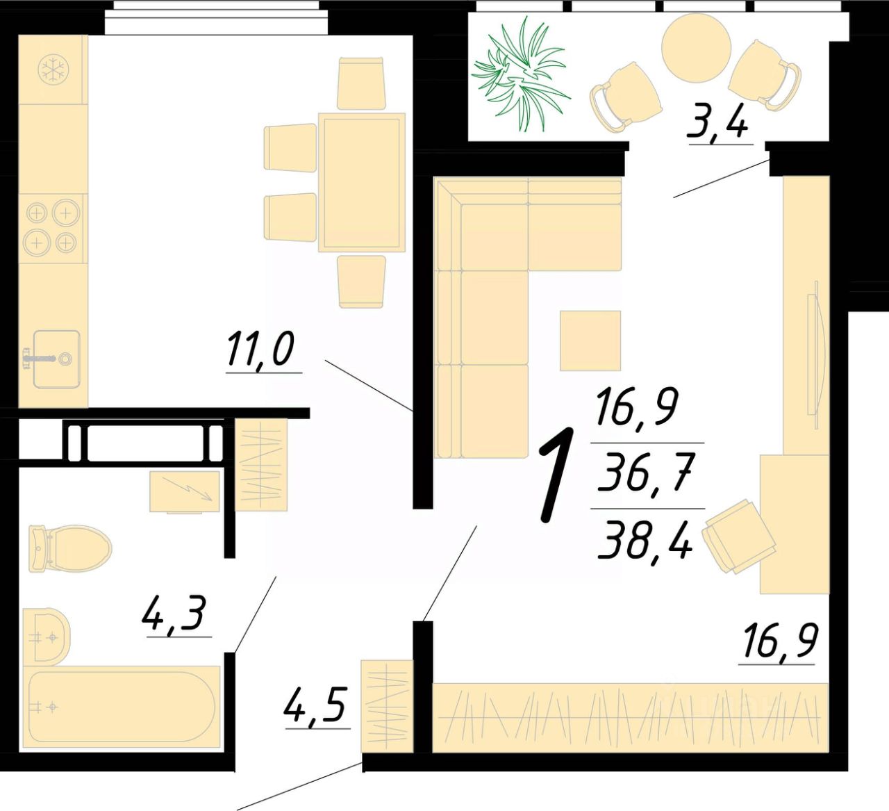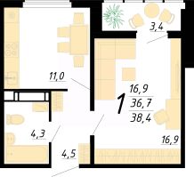 Продаётся 1-комнатная квартира в строящемся доме (Позиция 7), срок сдачи: I-кв. 2026, общей площадью 38.4 кв.м., на 12 этаже. Новый жилок комплекс "Яблоневые сады" от группы компаний "Домостроительный комбинат" расположен по адресу: г. Воронеж, по ул. Загоровского.