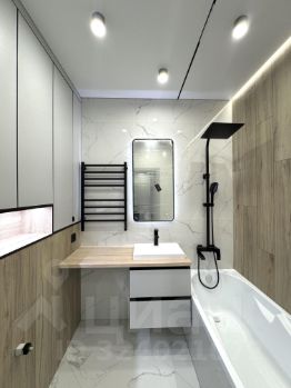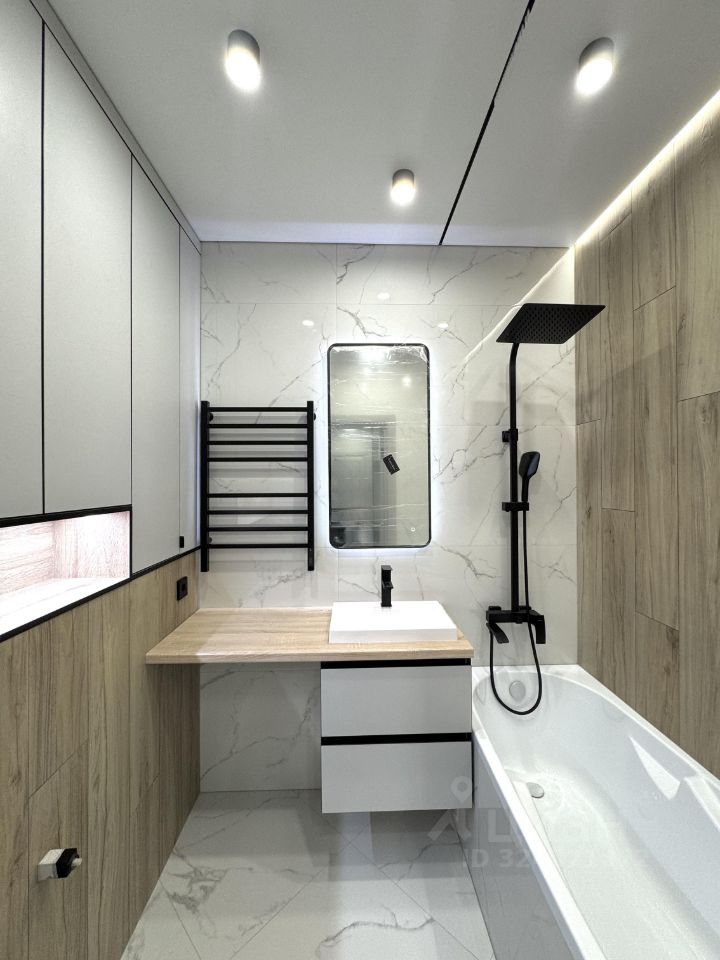 Сан узел: акриловая ванна, инсталляция, унитаз, гигиенический душ, зеркало с подсветкой , полотенцесушитель электрический