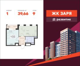 В продаже квартира площадью 39.66 кв. м с черновой отделкой. Квартира расположена на 9 этаже 12 этажного дома, в новом жилом комплексе "Заря" от федерального застройщика "Развитие".
